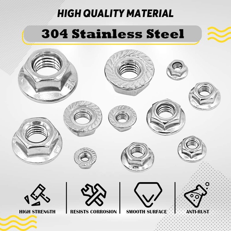 - ◆ Nuts Type: Hex Serrated Flange Nut; Material: 304 Stainless Steel