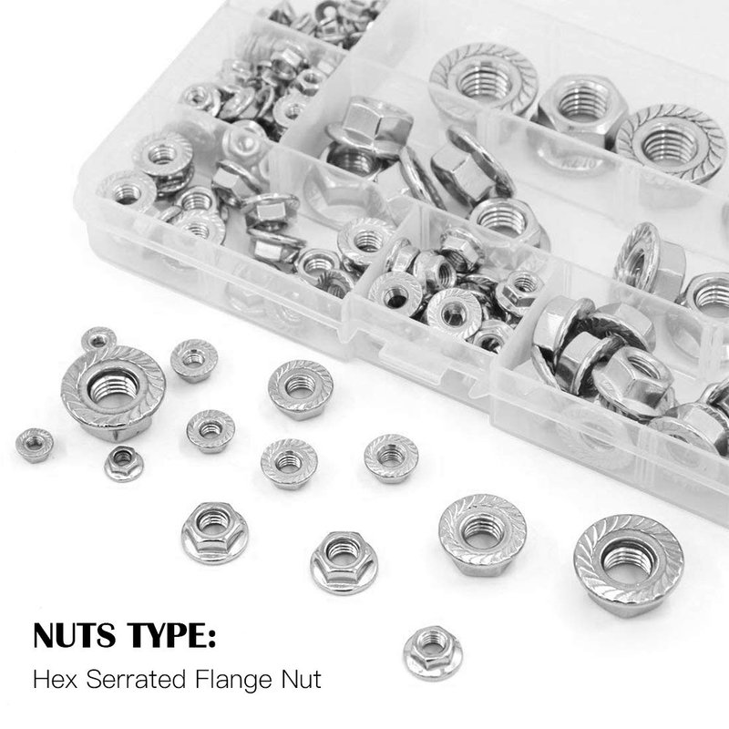 Hilitchi 140 Pcs High Quality 304 Stainless Flange Nuts Assortment Kit