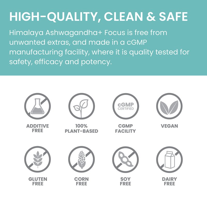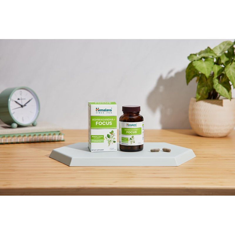 Himalaya Ashwagandha+ Focus with Ashwagandha, Bacopa, Rosemary & Green Tea for Memory, Focus and Clarity, 60 Capsules, 1 Month Supply, Vegan, Gluten Free