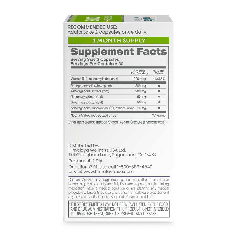 - ASHWAGANDHA CAPSULES PLUS MUCH MORE: Himalaya uses superior-grade Ashwagandha root, Bacopa monnieri, Rosemary, Vitamin B12 and other ingredients, making this one of the most well-rounded brain supplements for memory and focus. Every batch is produced the same way, with the same high-quality ingredients at the same concentration to ensure high-level consistency.