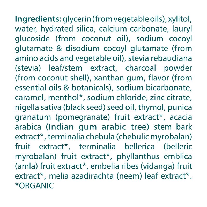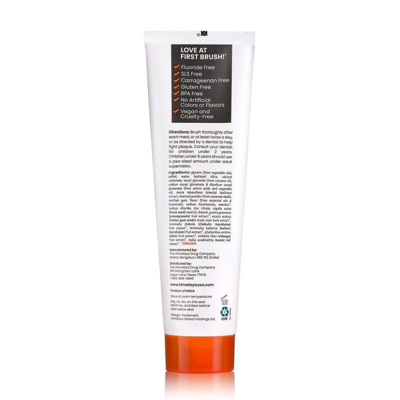 Himalaya Botanique Charcoal + Black Seed Oil Toothpaste combines the revolutionary cleaning power of Charcoal and the mouth-soothing comfort of Black Seed Oil with plaque-fighting Stevia, and the clean foaming ability of Coconut Oil. This mint-fresh toothpaste is free from all the stuff you don't want. No fluoride, carrageenan, SLS or gluten. No artificial colors or flavors. Just good clean toothpaste for fresh breath and brighter teeth.