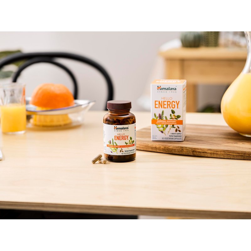 "You’ll be ready for anything the day has in store. Himalaya Hello Energy is an herbal blend that has been clinically studied to restore energy levels, improve your outlook and support vitality.* It’s a stimulant-free formula with Ashwagandha, Amla, Haritaki, Licorice and more to help you say goodbye to burnout and tackle your daily tasks without taxing the adrenals.* Hello Energy brings the power of plants to your day-to-day routine and helps nourish your hardworking adrenal glands to support normal cortisol and DHEA levels, which are leading indicators of adrenal health and increased vitality.* This hardworking formula also supports metabolism, sustained energy levels and mental clarity without caffeine.* In 1930, our founder became fascinated with the healing wisdom of herbs and set out on a quest to bring traditional Ayurvedic science to the world in contemporary form. Himalaya’s mission is to create happiness in every home and wellness in every heart by providing knowledge, advice and products that exemplify the best of the traditional Indian science of Ayurveda, which dates back over 3,000 years. Himalaya products are made with the utmost quality to live up to your high standards. From herbal supplements to botanical toothpastes to body and skin care, you’ll find products that enhance your daily life and make you feel your best."