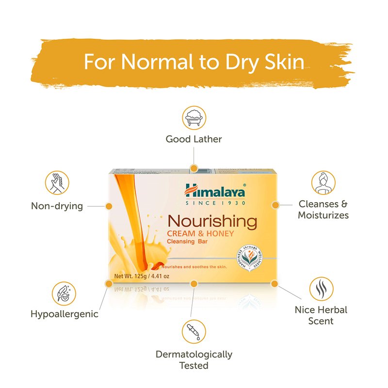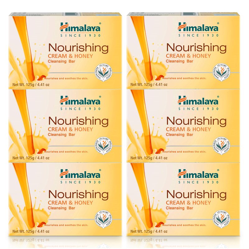 Himalaya Nourishing Cream & Honey Cleansing Bar, Face and Body Soap for Soft Skin, 4.41 oz, 6 Pack