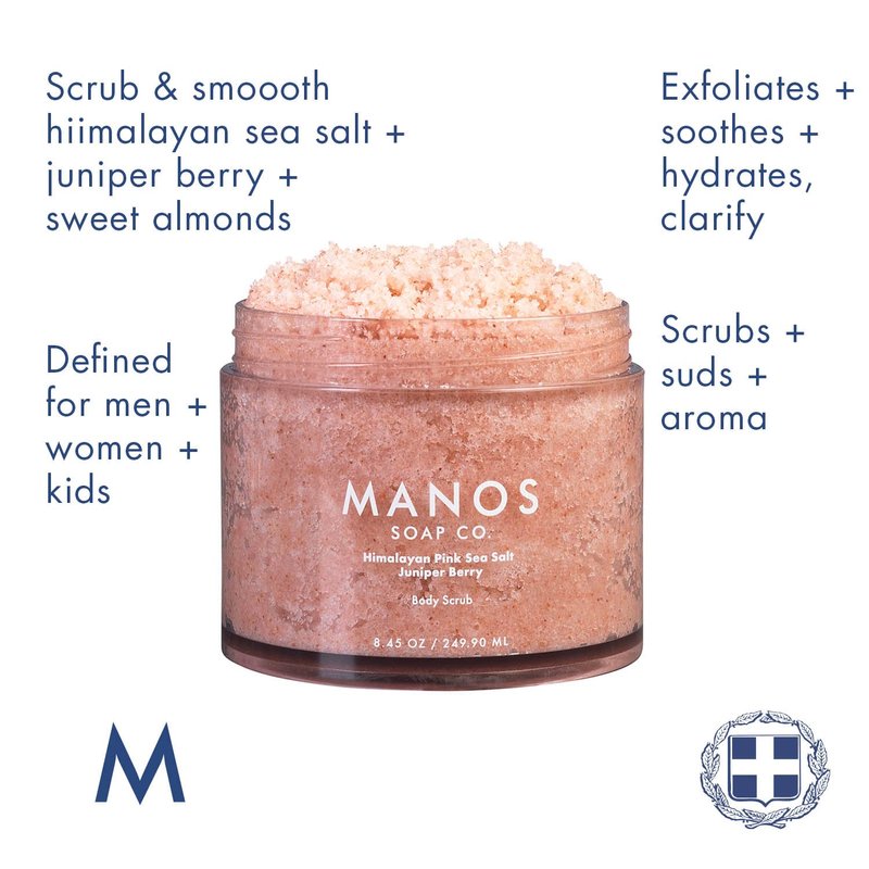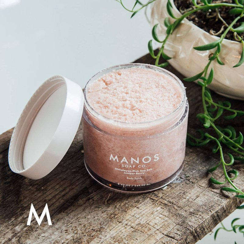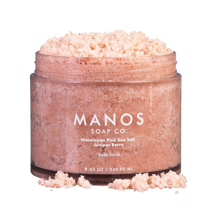 Himalayan Pink Sea Salt Body Scrub for Men Women Exfoliation Juniper Berry – Exfoliating Pink Sea Salt for Face Scrub, Body Scrub, Foot Scrub by Manos Soap Co. – 8 oz