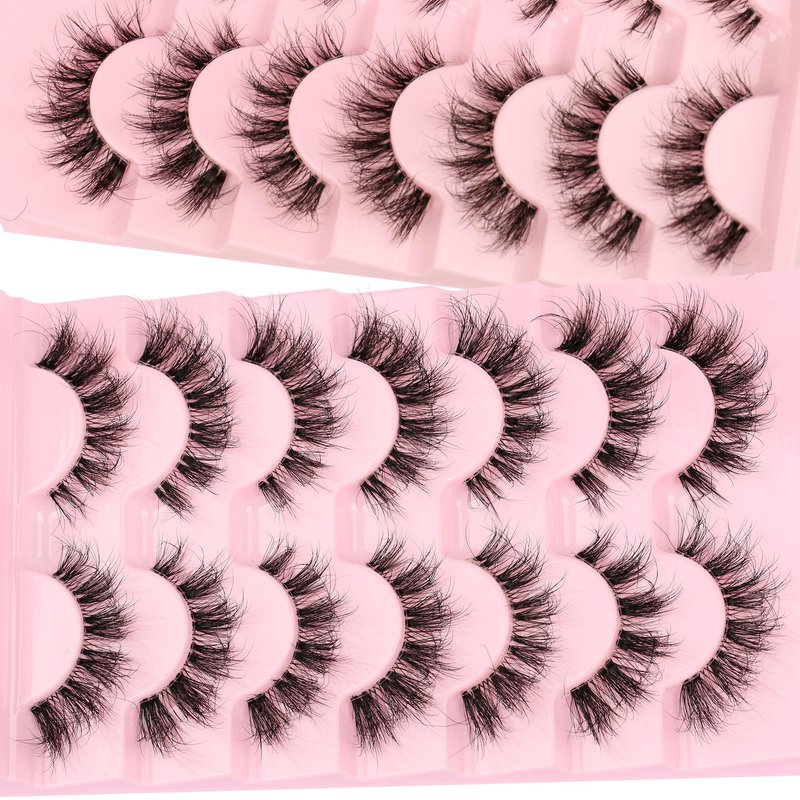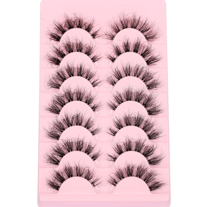 Himirell False Eyelashes Natural Look Lashes 6D Volume Clear Band Cat Eye Lashes Fluffy Wispy Fake Eyelashes Faux Mink C Curl Lashes 7 Pairs Pack