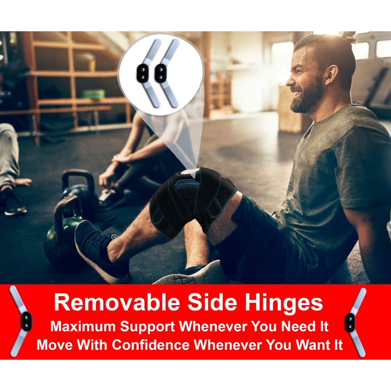 - ✅START MOVING AGAIN - PAIN FREE! This Versatile Knee Support Will Allow Full Range of Movement While Protecting, Recovering and Relieving Pain in Your Knee. Removable Hinges and Highly Adjustable Strap Allow You to Choose How Much Support You Get at Any Time!