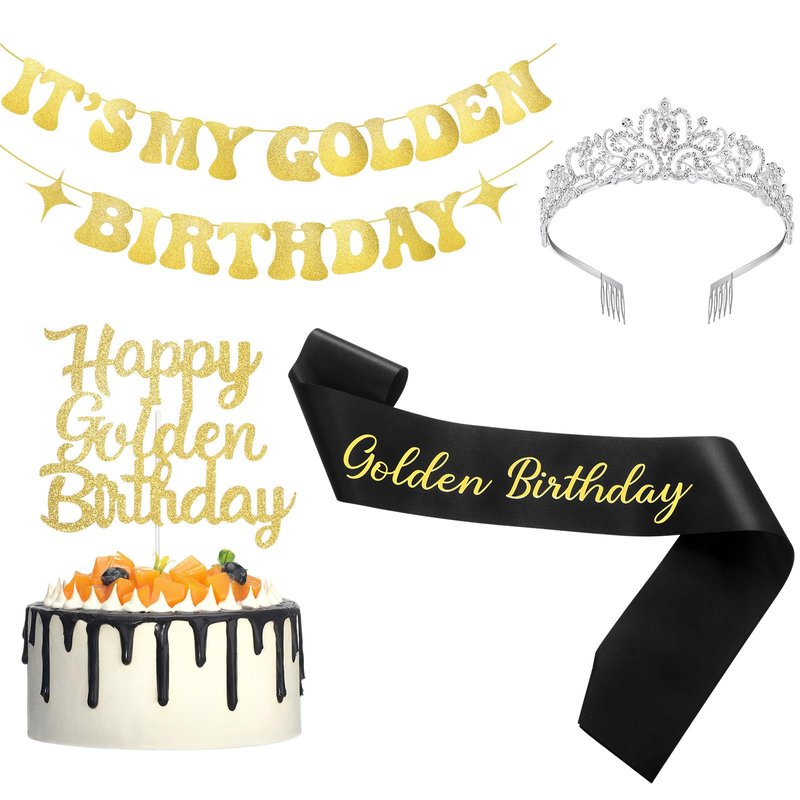 - Birthday Party Decor Essentials: celebrate your special day with our golden birthday supplies; The package includes 1 "it's my golden birthday" banner, 1 "happy golden birthday" cake topper, 1 golden birthday sash, and a princess crown; Each piece of decor contributes to creating a memorably golden birthday decor, setting just the right festive tone for your party