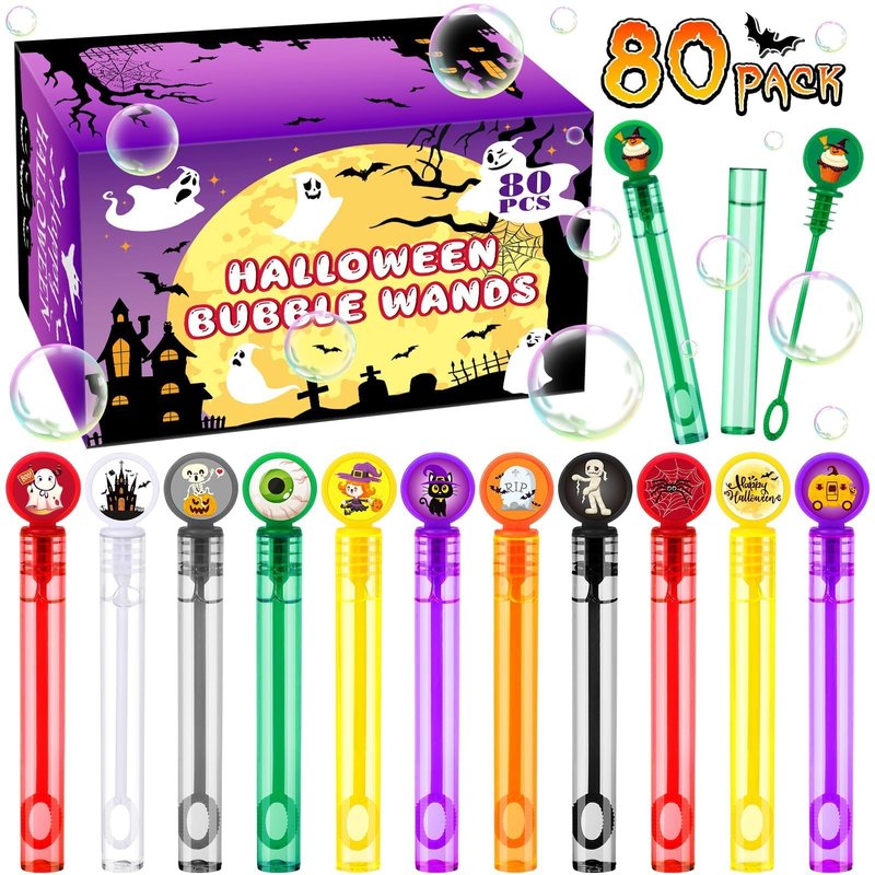 HINZER 80 Pack Halloween Party Favors Mini Bubble Wands Halloween Toys Gift for Kids Halloween Treats Non Candy Goodie Bag Fillers Pinata Stuffers Classroom Prizes Bubble Maker Toys for Boy Girl Kid