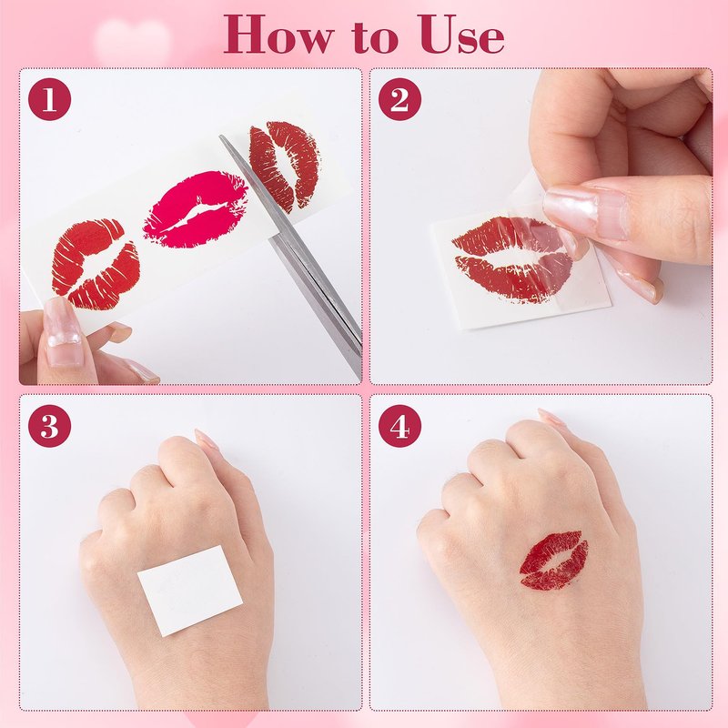 【Wide Application】: These charming red lips stickers for almost any skin of the body, arms, back, neck, face, legs, wrists and feet etc, suitable for Christmas, school activities, birthday parties, role plays, seaside photos, weddings and most occasions.