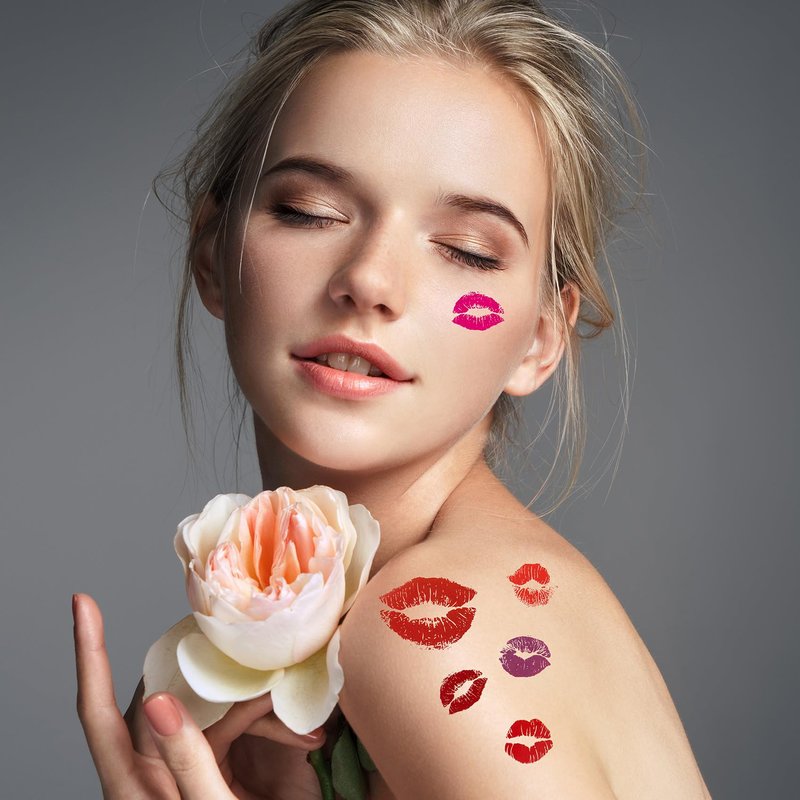 - 【Waterproof】Our red kiss temporary tattoos for women are made of waterproof paper, non toxic ink.