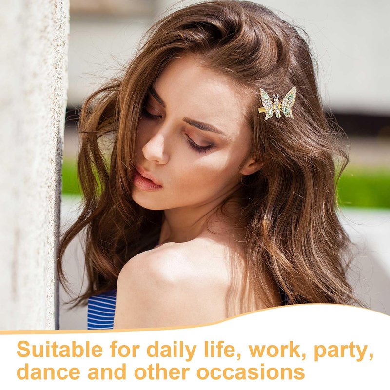 • 【Quality Material】This butterfly hair clip is made of high quality alloy and sparkling rhinestones with stylish design, lightweight and delicate. The beautiful butterfly shape and attractive colors will add a touch of elegance to any look.