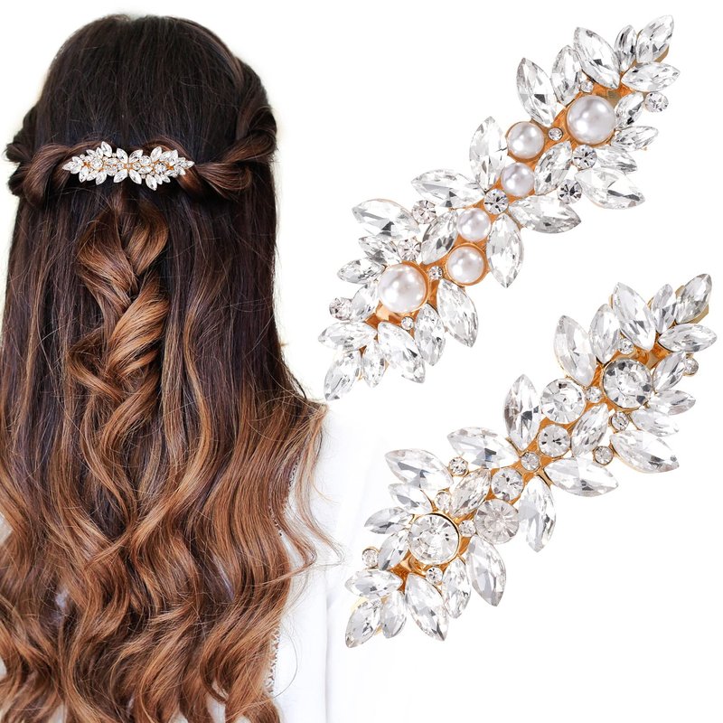 - Package Included: You will get 2pcs rhinestone hair clips, which are suitable for thick hair, romantic wedding updo, casual ponytails, half up styles, knot, overlapping, twists, braid or more hair styles. Size: 3.25x1.17 inches/8.27x2.98cm. Surprising gift and hair decoration!