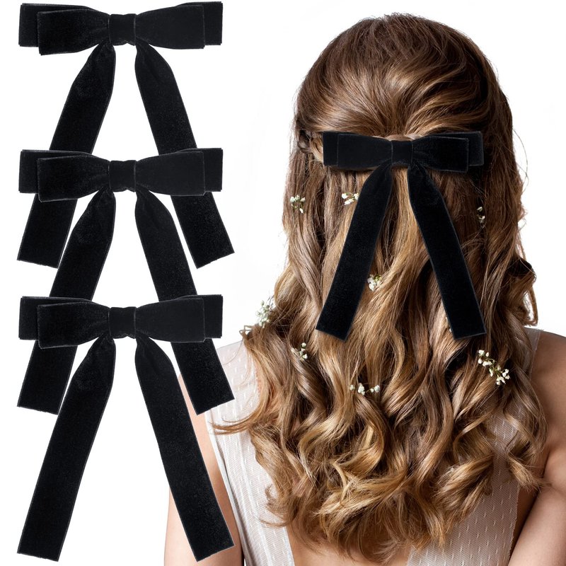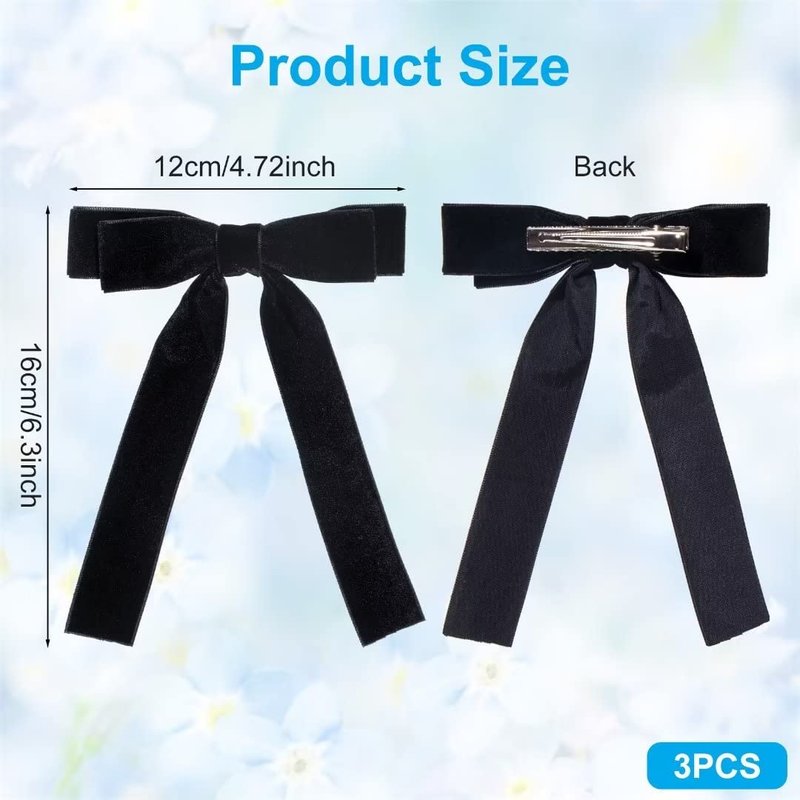- 💗💗 Soft and Sturdy Material: Our hair bow clips for thin hair are made of High Quality Velvet Ribbon + Long Tail + Black Hair Clip + Exquisite Workmanship, the balck ribbon is really soft and the hair bow clip is sturdy. When you take them out of your head, they slide off immediately and will not pull or damage your hair.