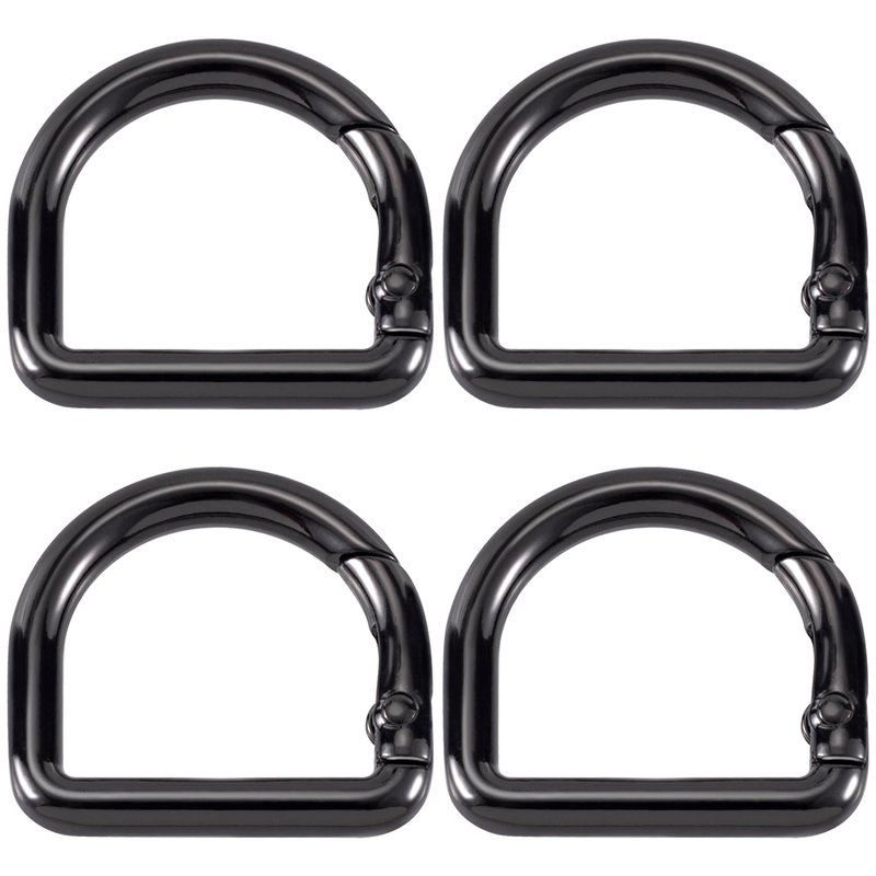 HINZIC 4 Pack D Ring Spring Key Hooks Keyring Clip Buckles Clasp Clamps for Belt Backpacks Handbag Purse Strap- Black
