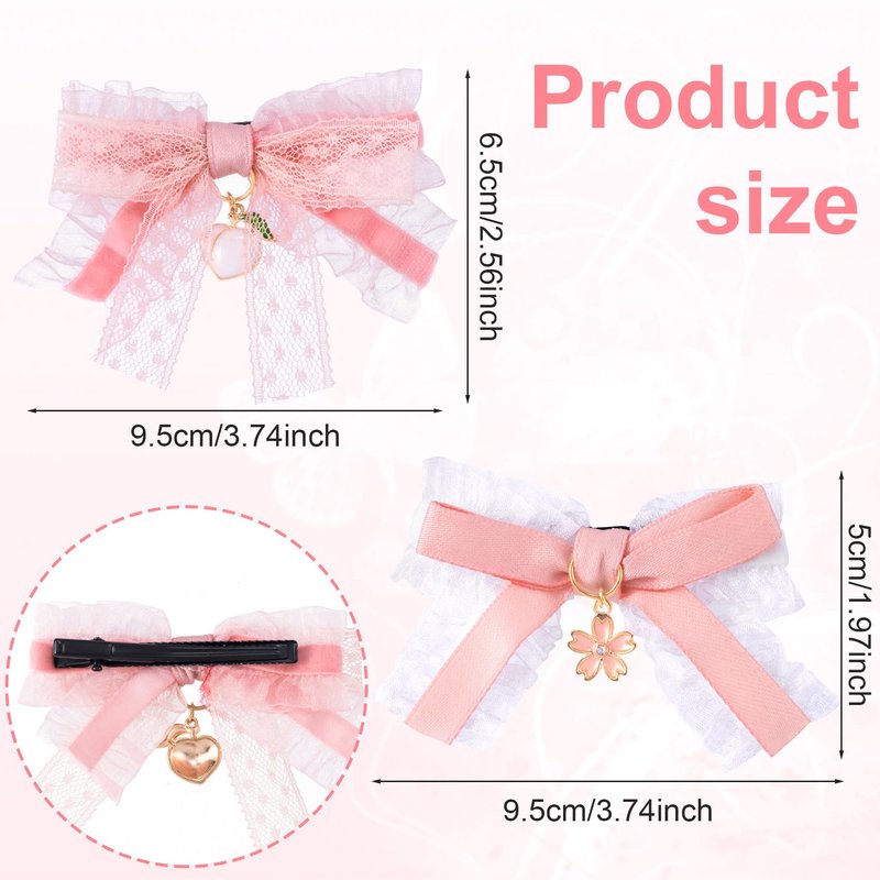 - 【Exquisite & Lovely Design】Our pink and lace hair clips are designed with White Lace + Pink Bow Ribbin + Pink Flower/Peach Ornaments. Teen girls always have dreams of being more lovely and elegant, these lace bow barrettes will be sure to make their dreams come true! Moreover, bright colors will cheer up girls and inspire creativity. They will like it very much.