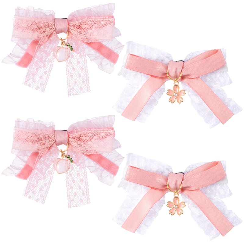 HINZIC 4Pcs Pink and Lace Hair Clips, Cute Bow Alligator Clips Pink Peach Hair Flower Pendant Barrettes Halloween Rave Christmas Wedding Prom Birthday Decoration for Teen Women Thin Hair