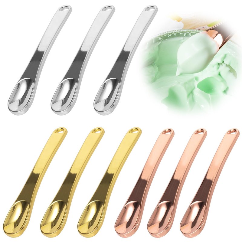 HINZIC 9 Pack Mini Makeup Spoons for Face Mask Applicator Tool, Metal Cosmetic Spatula Scoops for Facial Cream Lotions Moisturizers- Rose Gold & Gold & Silver