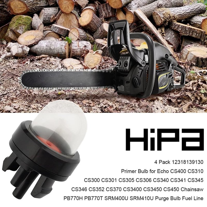 Hipa 4 Pack 12318139130 Primer Bulb for Echo CS400 CS310 CS300 CS305 CS340 CS370 CS3400 CS3450 CS450 Chainsaw Husqvarna Weedeater Poulan Ryobi Craftsman Stihl Homelite Trimmer Blower with Fuel Line