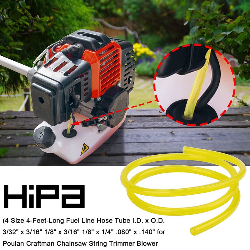 Hipa Trimmer Chainsaw Fuel Line Hose Tube I.D. x O.D. 3/32" x 3/16" 1/8" x 3/16" 1/8" x 1/4" .080" x .140" for Poulan Craftman Chain saw Weed eater Blower 4 Size 4-Feet-Long