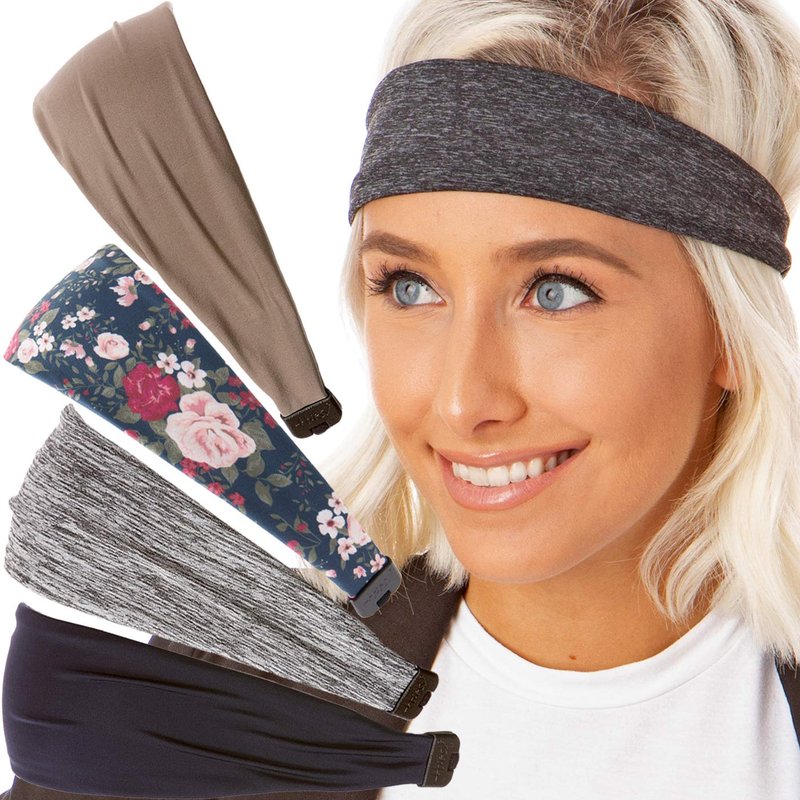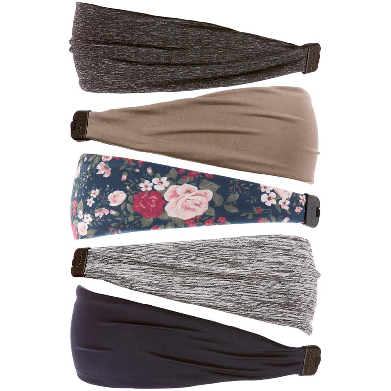 Hipsy Adjustable Cute Fashion Sports Headbands Xflex Wide Hairband for Women Girls & Teens (5pk Navy/Grey/Floral/Taupe/Charcoal Xflex)