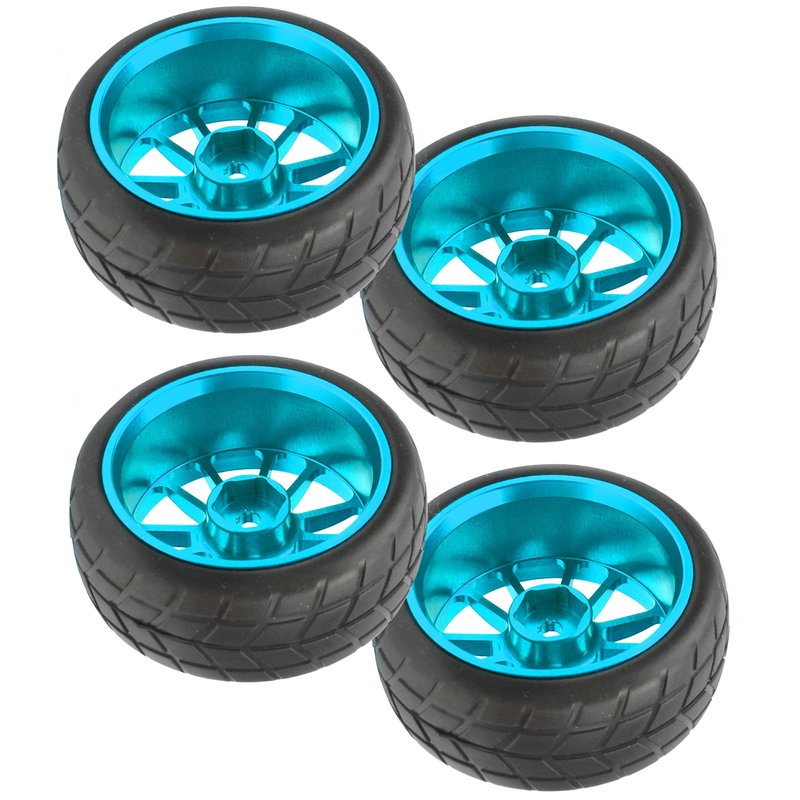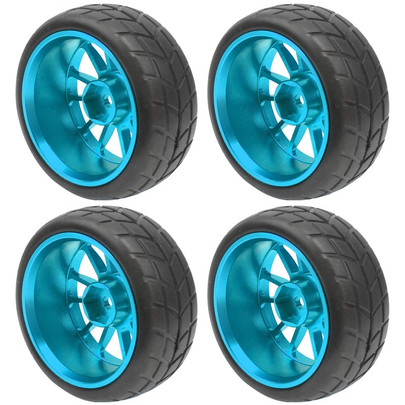 HIRCQOO OD 2.55" Rubber Tires & Metal Wheel Rims 12mm Hex Hub Compatible with HSP Tamiya HPI Kyosho 1/10 On-Road Touring Car WLtoys 1/14 144001 Traxxas 1/16 Slash 1/18 A959B RC Buggy (Blue)