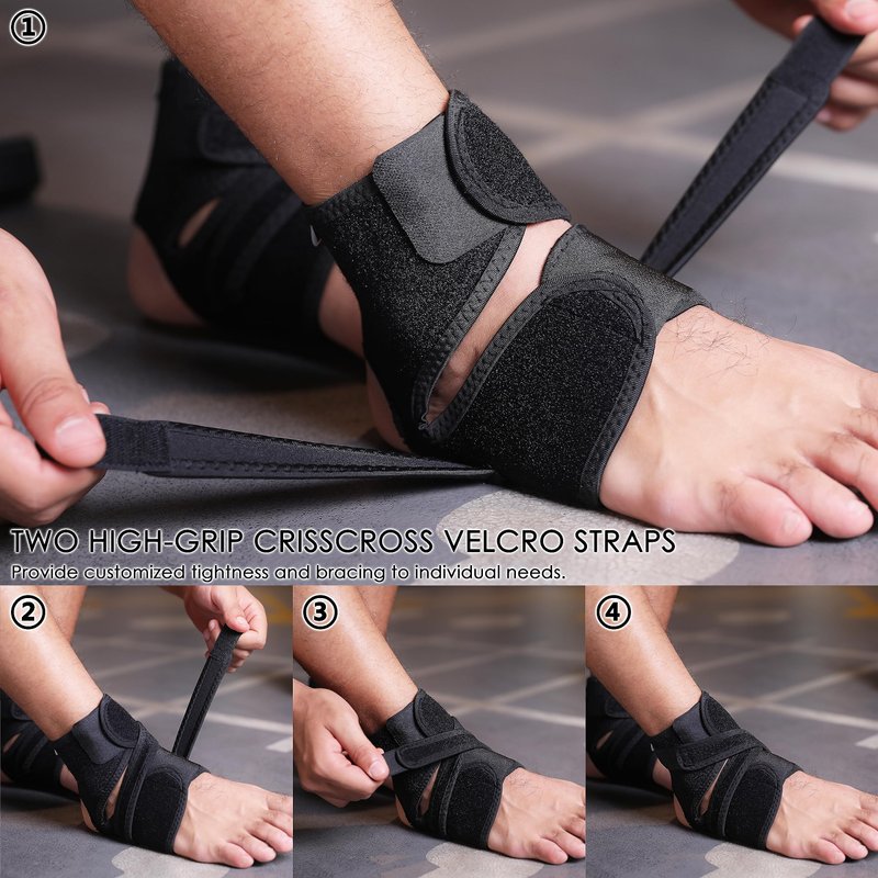 - ►ULTRA-STRONG SUPPORT - This ankle support fitted with two reinforcement straps to offer strong support & stabilization for the ankle tendons and joints. Simple and effective high-grip crisscross Velcro straps attach anywhere along the entire sleeve to provide customized tightness and bracing to individual needs. Best ankle support brace for running, exercising, and day to day activities.