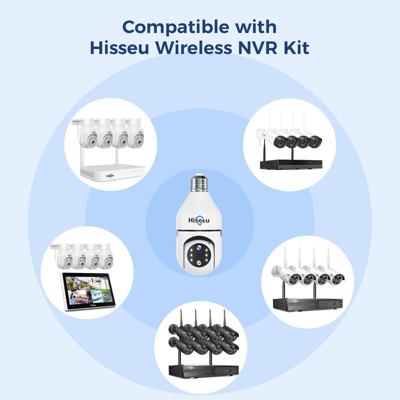 - 【Multi-User Sharing & Alexa/Cloud Storage Compatibility】Wireless Light socket security camara supports multi-users to watch the video simultaneously, allowing your friends and family to view the footage on their phones simultaneously. Hiseeu ligh bulb camera is compatible with Alexa, supports SD Card (up to 128 GB) and Cloud storage(Note: SD card is not included, cloud storage is not for free).