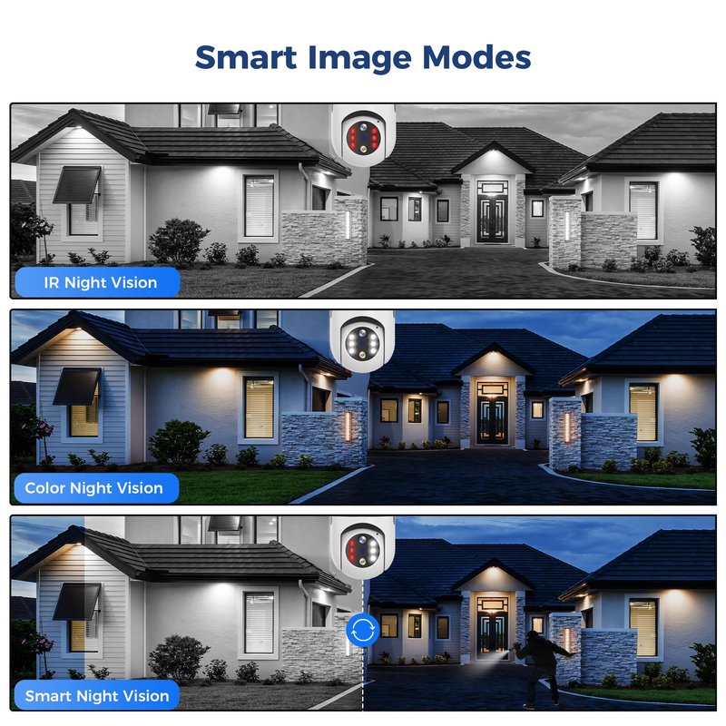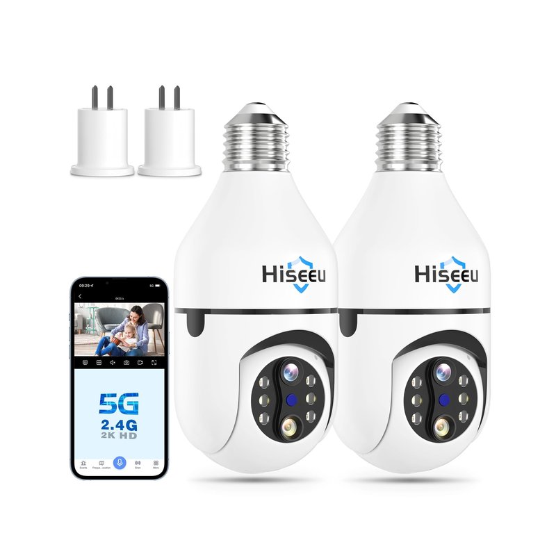 - 【3MP HD Image & Color Night Vision】Hiseeu wireless light bulb camera supports 3MP HD resolution, ensuring ultra-clear details during the day and night. The bulb camera offers color/smart/infrared night vision options, making it possible to monitor objects up to 30 feet away in low-light conditions, including faint starlight or complete darkness.