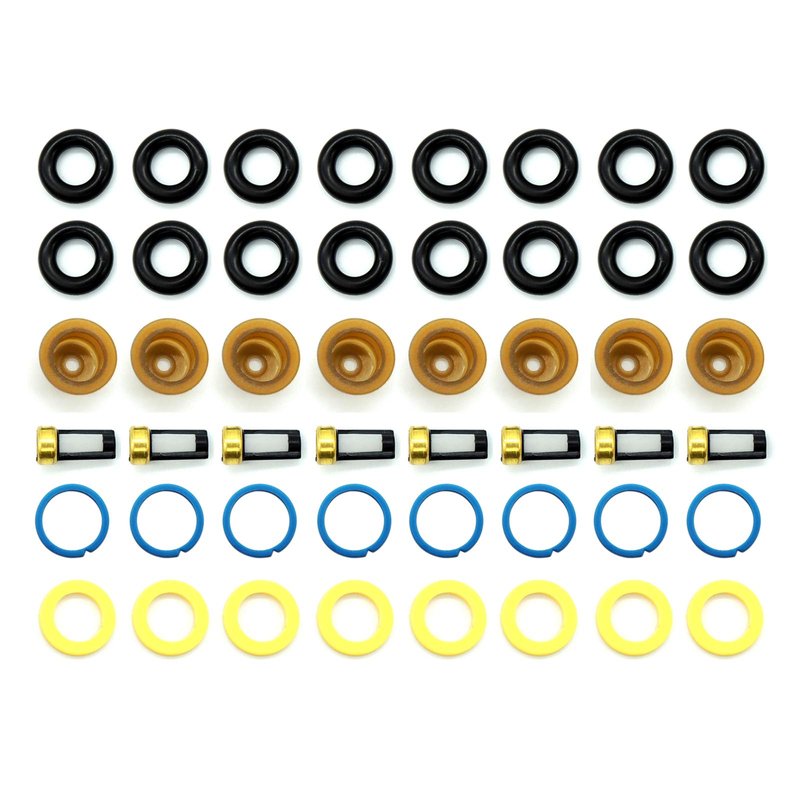 • [PACKAGE INCLUDES] This fuel injector repair kits include 8 micro filters 101, 16 injector O-ring 203, 8 injector retaining pintle caps 308, 8 injector spacers and 8 injector seal,1 micro filter removal tool.