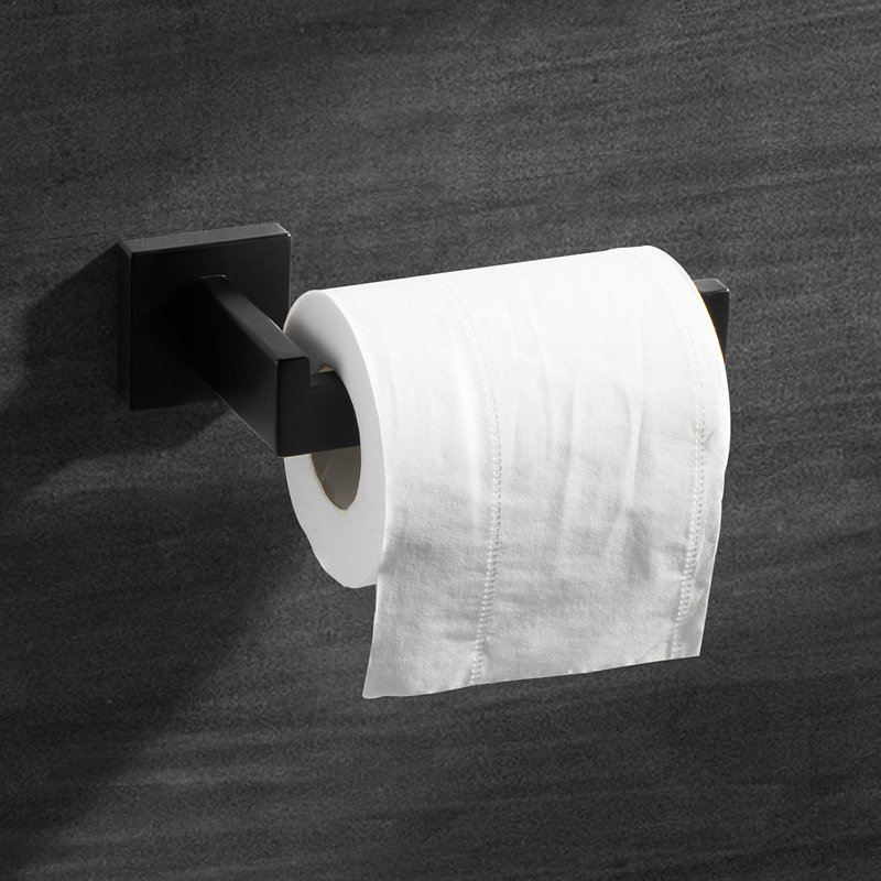 HITSLAM Matte Black Toilet Paper Holder Wall Mount Premium 304 Stainless Steel Square Toilet Paper Roll Holder for Bathroom Rustproof