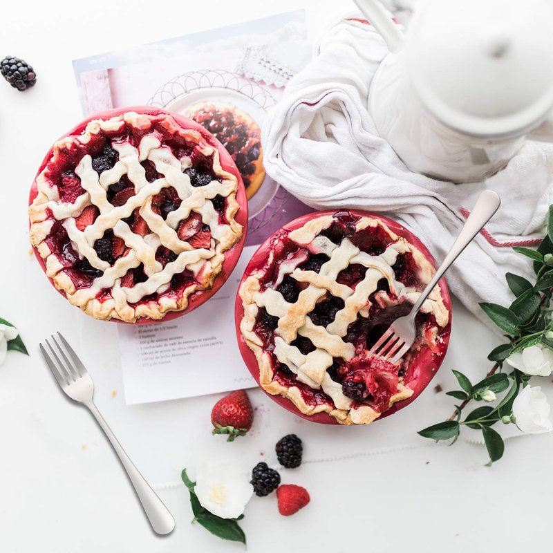 - Set of 12 stainless steel forks, heavy duty and durable. Great for appetizer, salad, dessert, fruit, cake, etc.