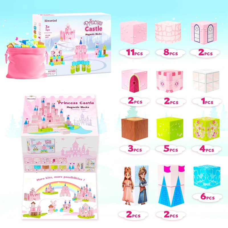 - 【Frozen Princess toys- Magnetic Castle】Hiwawind's magnetic building blocks let you easily create your dream castle. The powerful magnets allow you to freely build, rebuild, and imagine all kinds of castle landscapes. Princess-themed designs and diverse patterns give the building blocks unique appeal, enabling children to unleash their boundless creativity. Come with an idea booklet to guide and inspire them to explore the magnetic castle dream world.