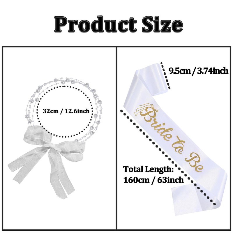 - 【Material】The bride headband is made of pearl and plastic material,and the white ribbon can be adjust. The bride to be sash is made of premium white satin, smooth and soft.