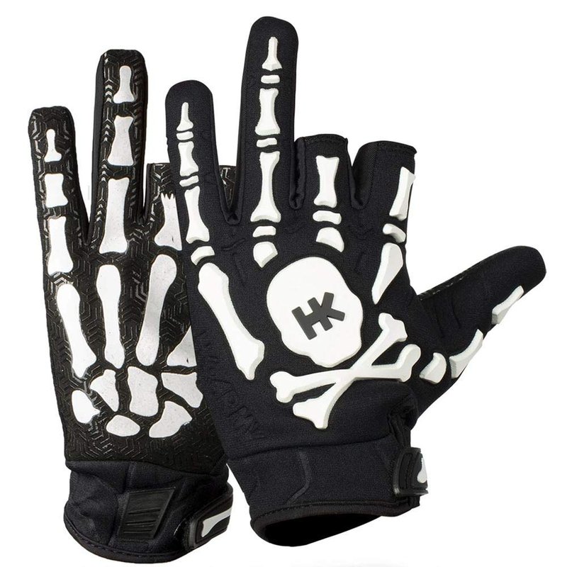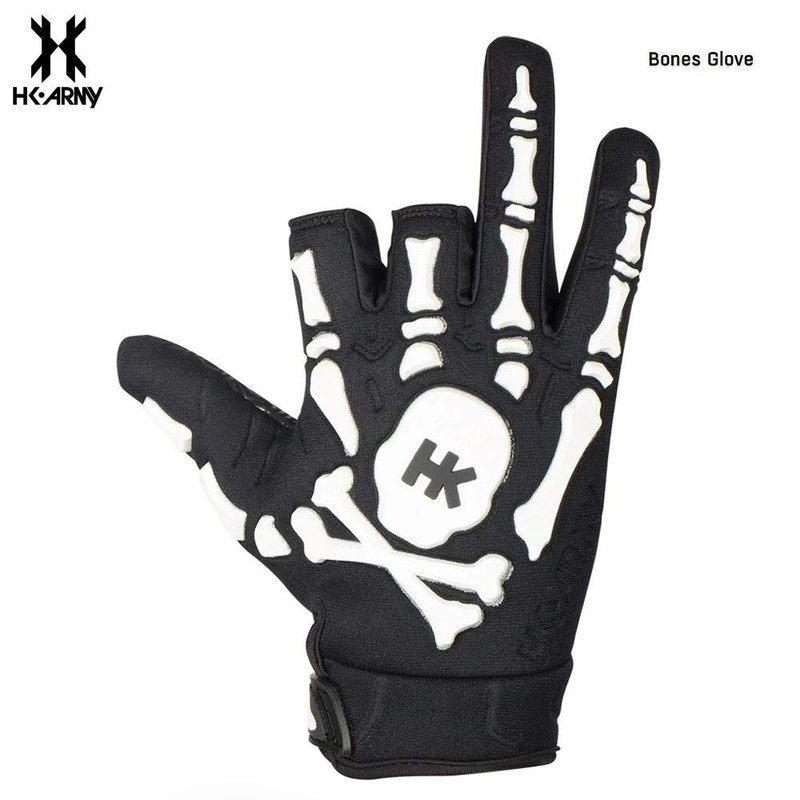HK Army Bones Gloves are designed with the paintball player in mind. Engineered for high performance, comfort, and superior durability. Featuring a sleek, form-fitting design, neoprene-padded hand protection, custom printed bones silicone palm grip, TPR bones on the top of the glove and low-profile velcro for easy release, the Bones glove is both lightweight and protective. Furthermore, the two-finger-less design allows for optimal rapid firing.