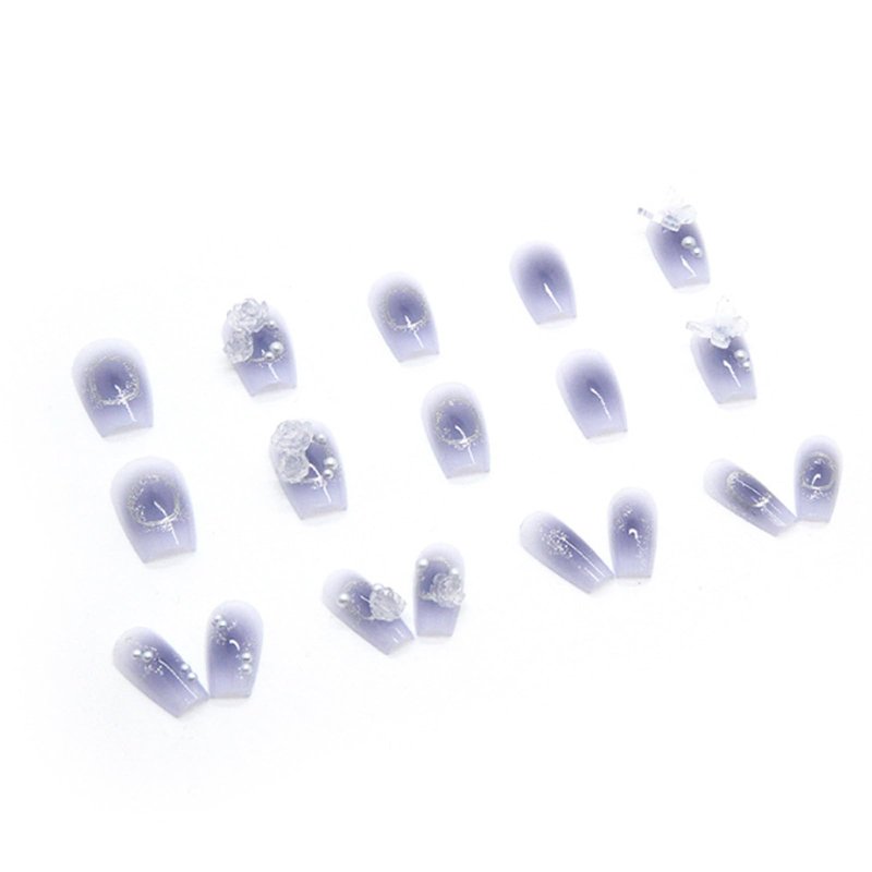Hkanlre Press on Nails Purple Medium Fake Nails Tips Full Cover Gradient False Coffin Butterfly Nails for Women and Girls 24PCS