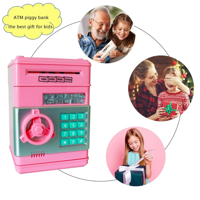- 🎀[The Idea Gift for Kids - ATM Piggy Bank Toys] The mini atm piggy bank for real money is best gifts for 5 6 7 8 9 10 11 year old girl , Password piggy bank for secure storage of children's deposits. Give it as a gift for a birthday or Christmas gift, New Year gift, holiday gift, Halloween gift, Thanksgiving gift, children's gift, reward, watch your child's face light up with excitement! Ideal money safe bank for kids girls age 6-8-10