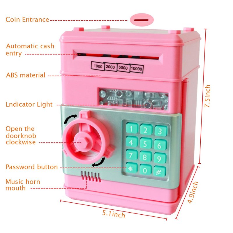 - ✅[How To Use]1️⃣Step1; Please use 3xAA new batteries (batteries not included). 2️⃣Step 2;Put in cash or coins (cash will be automatically sucked in). 3️⃣Step 3;Input the correct code (the original password is "0000"). 4️⃣Step 4; Open the door by turning it clockwise. birthday gift kids toys for 4 5 6 7 8 year old girls