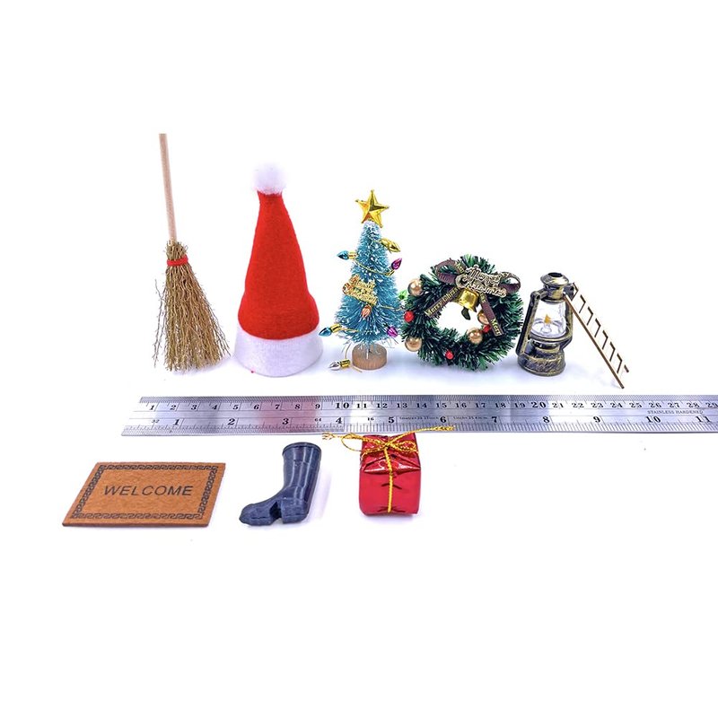 - PACKAGE INCLUDED - 5m string of lights,1 x Christmas hat, 1 x Ladder, 1 x Wreath, 1 x Tree, 1 x Carpet, 1 x Broom, 1 x Barn lantern,1 Pair of boots, 1 x tree Decorative, 12 x Gift boxes.