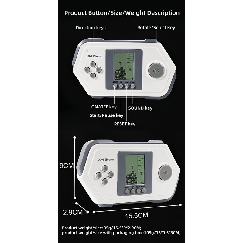 - ★★Key partitioning is more conducive to operation★★The new key distribution concept breaks the traditional design thinking of the block game machine, and sets the keys on the left/right sides, which is more in line with the user's operating habits and more convenient to operate.