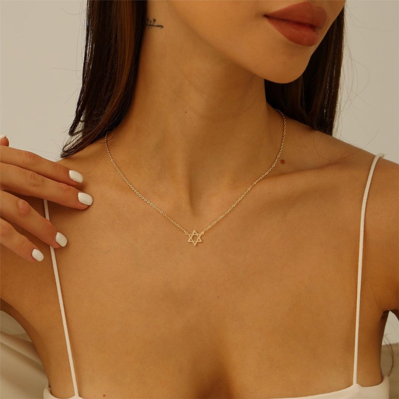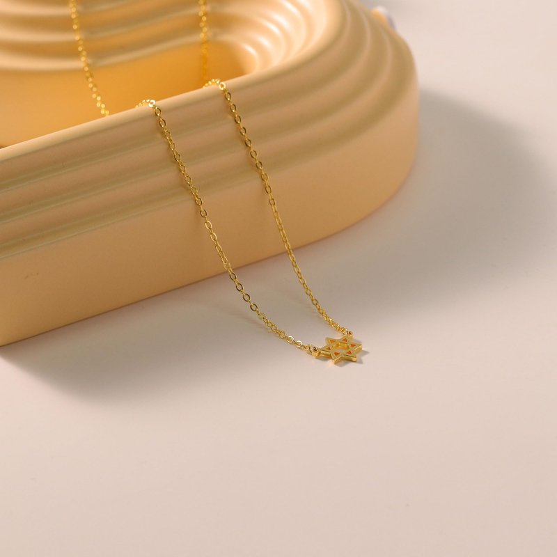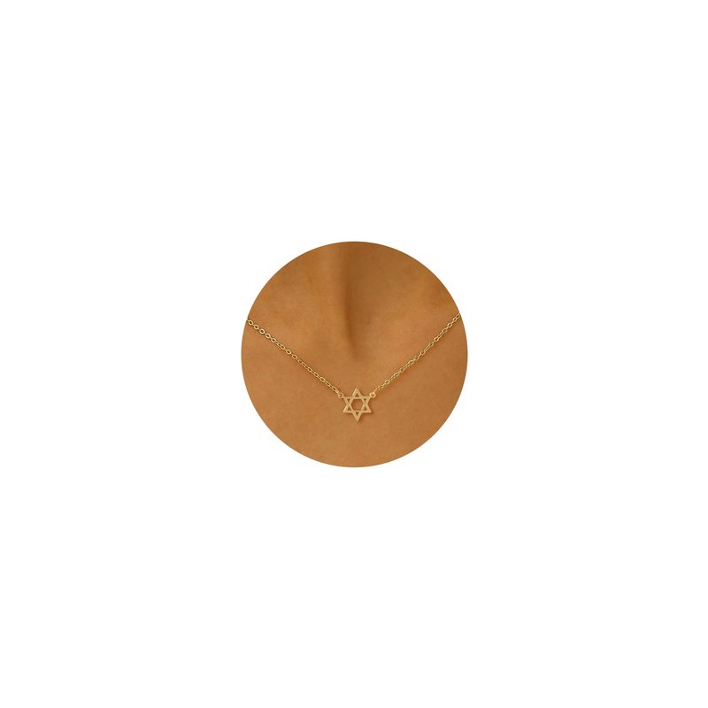 - DAINTY NECKLACE: The Star of David Necklace features polished 14k gold and hangs on a 16.5 inch chain. Crafted with subtle cuts that give volume and the impression of intricacy. A universal symbol of protection, this necklace reminds us to find strength in any situation.