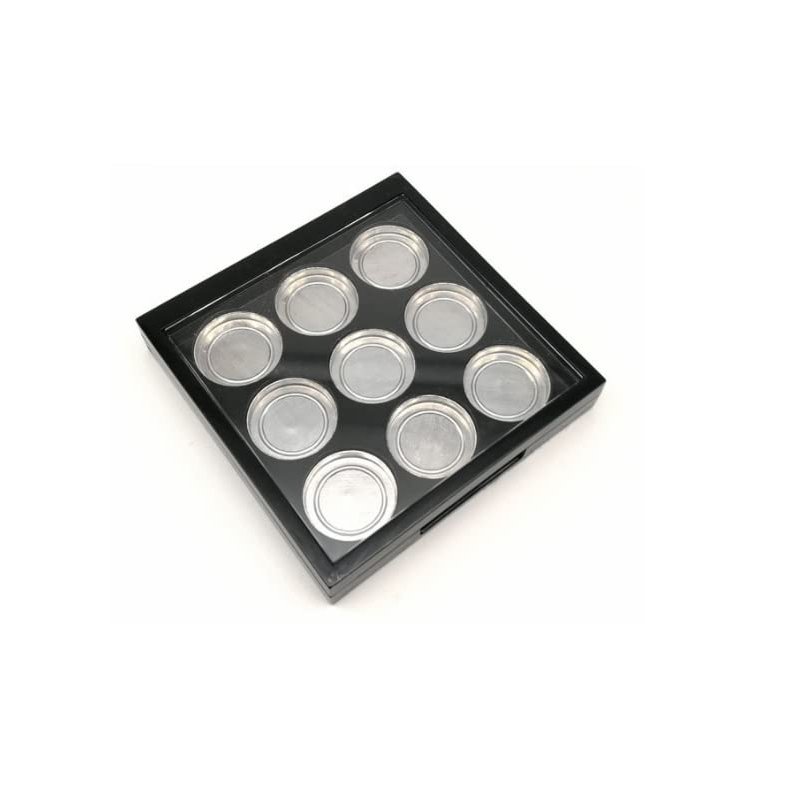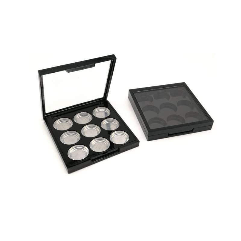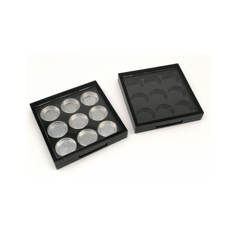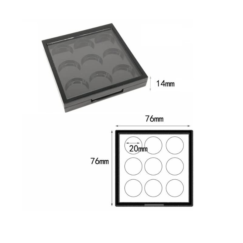 HLLMX 1 PCS Empty Eyeshadow Palette Portable Square Eyeshadow Box 9 Grids Cosmetics Storage Organizer 20mm Round Metal Pans for Eyeshadow Lipstick Blush Powder Pigment (Black)