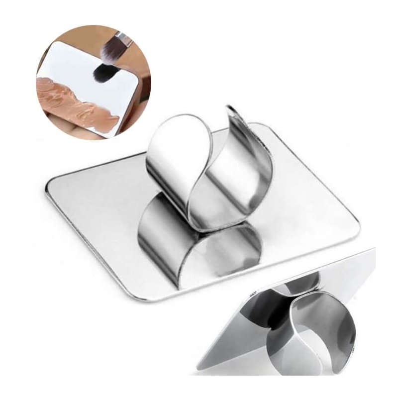 HLLMX 1 PCS Nail Art Palette Nail Art Palette Stainless Steel Cosmetic Makeup Palette Mini Nail Art Cosmetic Ring Palette DIY Art Design Paint Color Mixing Palette Metal Tool