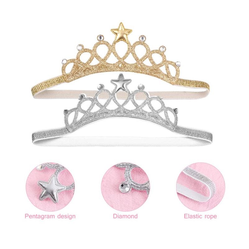 2 x Baby Girl Crown Tiara Headband Head Wrap Hair Band Headwear Birthday Gift Princess Tiara Crown Headband