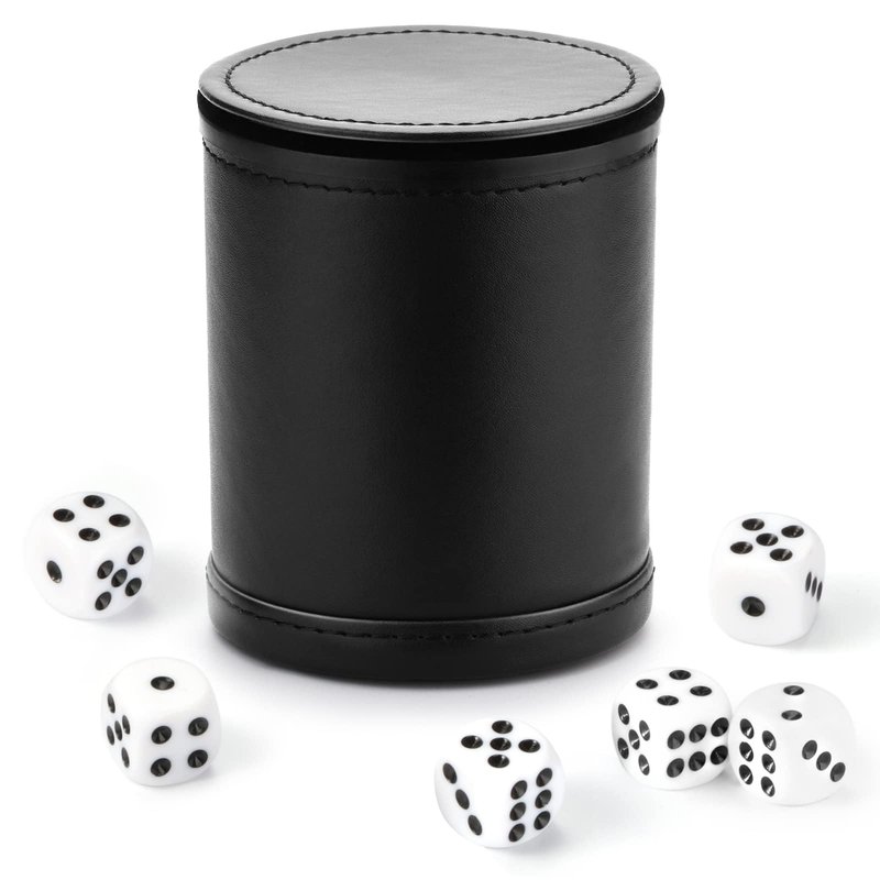 - 5.What You Get: A PU leather felt lined dice cup with six 16mm standard dice.