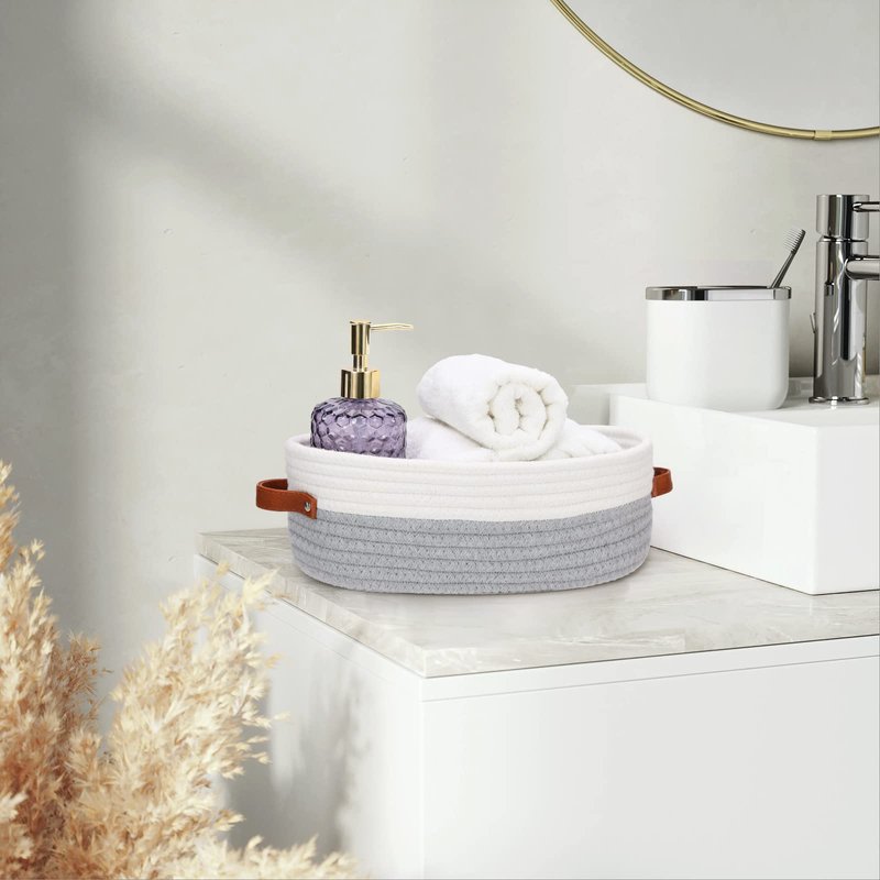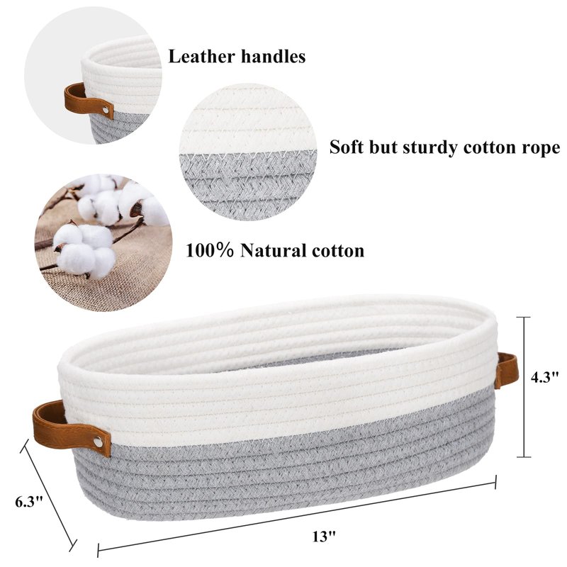 - Portable: Decorative basket with sturdy faux leather handles are easy to grip, allowing you to easily transport the basket to a table or countertop. Our cotton rope basket are not only practical, but also stylish ! It can blend in with any home decor style from rustic.