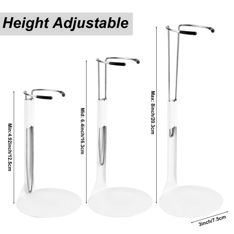 Dimension: Doll stand height from 5" - 8", fit for 8"-12" dolls and action figures, adjustable depending on the height of the waist of your figures.