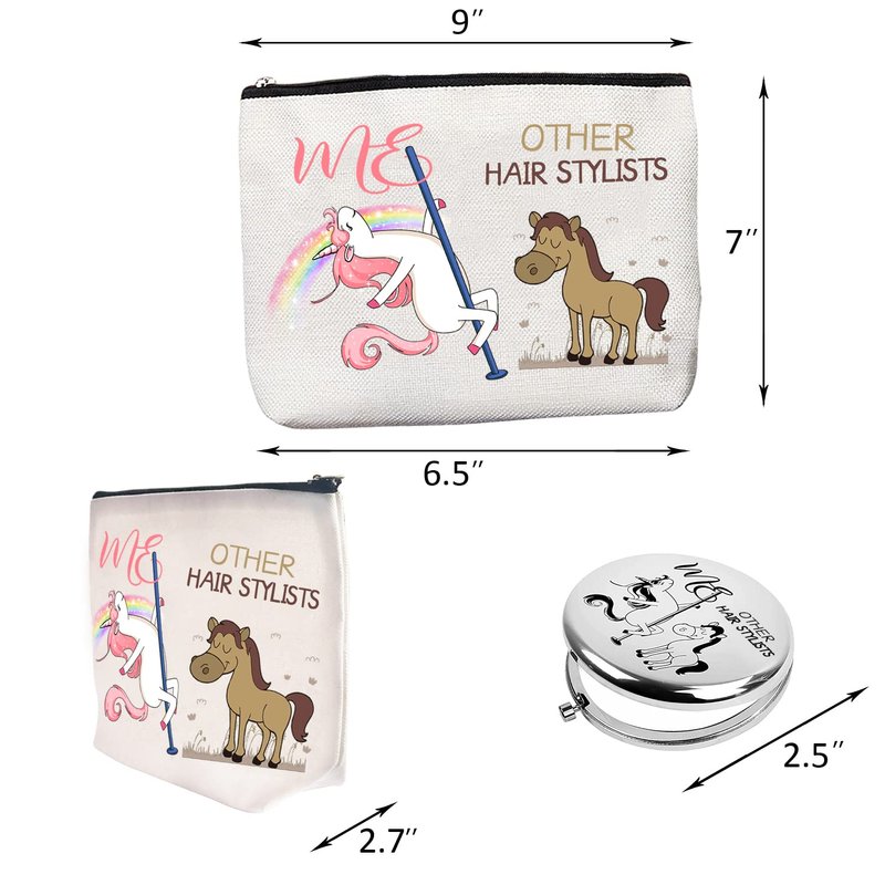 • Hairstylists Gift: The other Hair dresser me unicorn Gift Bag for Hairstylists is made with high quality waterproof material and linen, Other Hairstylists Me Gift Bag is soft & durable, our other Hair Stylist Me Unicorn Cosmetic Bag is also stain resistant and waterproof. And Other Hairstylists Me Gift Mirror is lightweight but made with stainless steel that not easy to deformed and does not fade