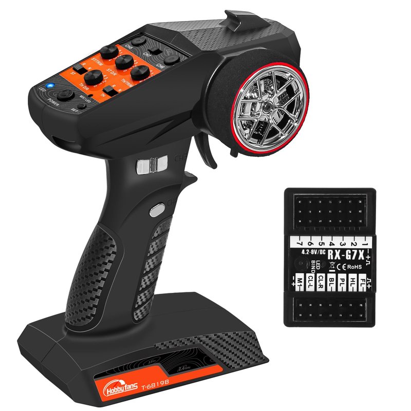 Hobby Fans RC Radio System 7CH 2.4G RC Transmitter with Receiver Anti-Jamming Remote Controller for RC Car Crawler Boat, Button
