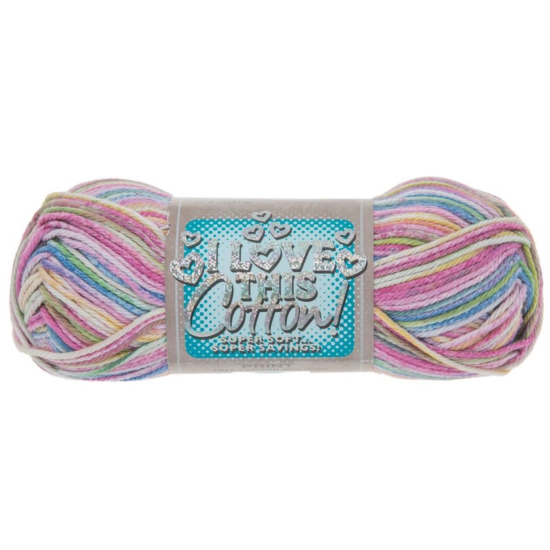 You won't believe how soft this I Love This Cotton Yarn is until you feel it! This lovely cotton yarn features a beautiful color that makes it perfect for making scarves, sweaters, and so much more! Get creative with knitting and crocheting! Note: We are aware of the importance of dye lots and make every effort to pull the same dye lot on orders for multiple skeins of yarn; however, we are unable to guarantee all skeins will be the same dye lot. Details: Content: 97% Cotton & 3% Metallic Polyester Yarn Weight: 4 - Medium Recommended Knitting Needles: 5mm (USA Size: 8 - UK Size: 6) Knit Gauge: 18 Stitches x 23 Rows = 4" x 4" Recommended Crochet Hook: 5.5mm (USA Size: I-9 - UK Size: 5) Crochet Gauge: 13 Single Crochet x 14 Rows = 4" x 4" Skein Weight: 3.5 Ounces Skein Yardage: 180 Yards Care: Machine Wash, Warm Tumble Dry, Normal Iron, Low Do Not Bleach Dry Clean, Any Solvent