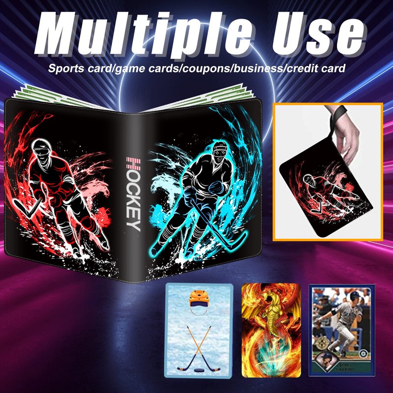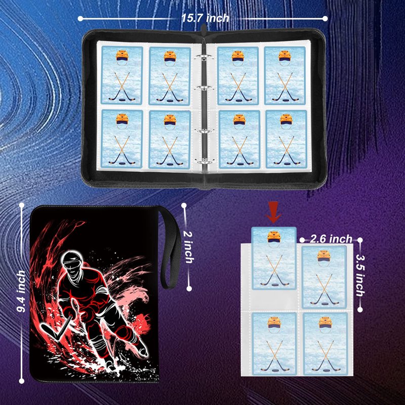 - Our trading card holder has 50 sleeves 4-Pocket Pages(double-sided use)to hold up to 400 cards.Store and display all the cards you own in this trading card holder,keep your Hockey cards organized,dust-free,and protected inside this case.